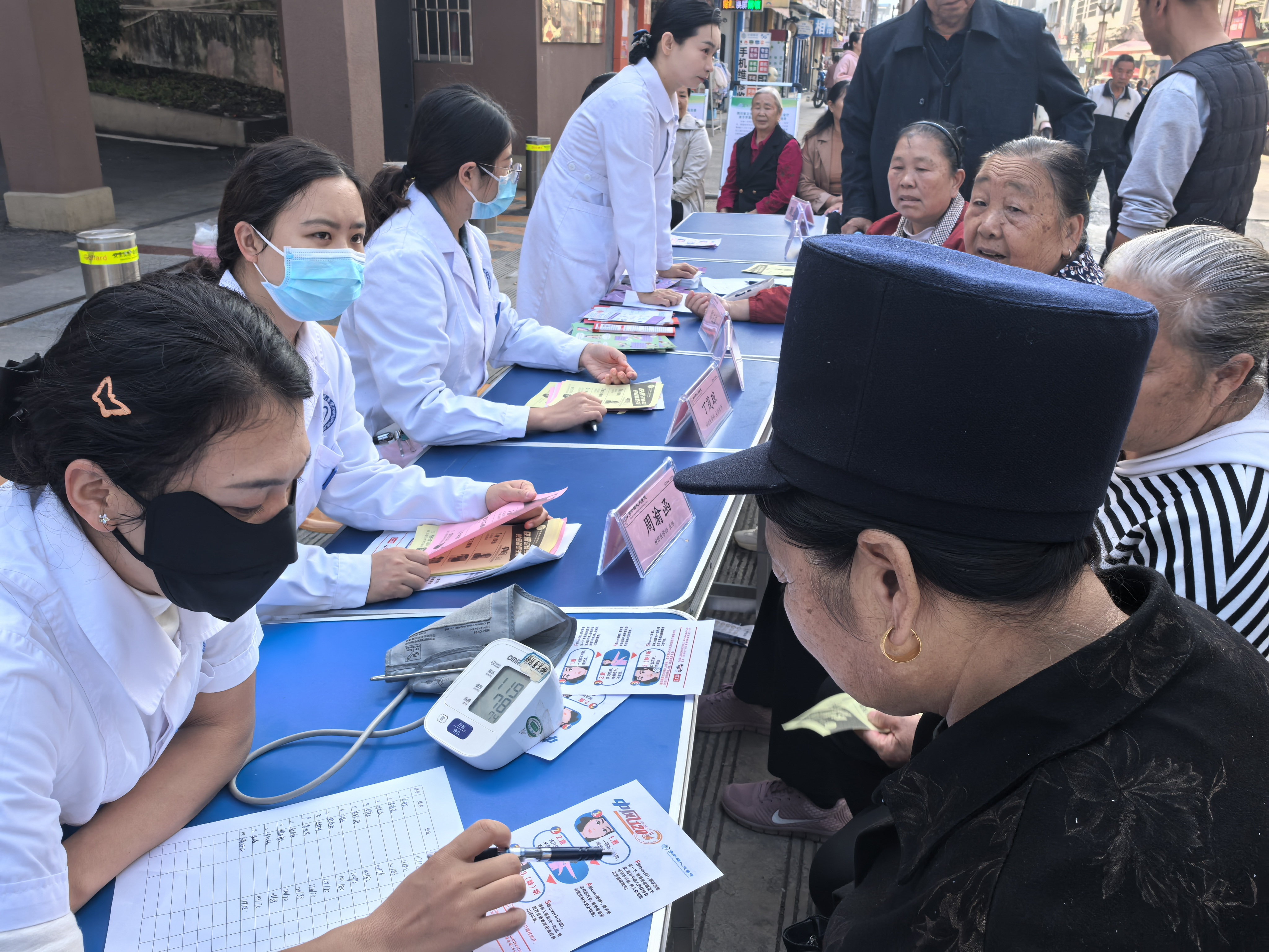 义诊现场,前来咨询群众络绎不绝。专家团队与群众零距离面对面交流,针对个体健康状况答疑解惑,提供合理化健康建议,定制专属卒中预防方案;护士则开展卒中高危因素筛查,为现场居民免费测血压、发放《脑卒中认识与药物治疗》《卒中防治核心知识》等科普宣教手册,直观讲解卒中可干预危险因素、早期识别方法、急救流程及康复要点,传递“远离卒中”健康理念,让群众在家门口就能享受专业医疗服务,切实将健康保障送到手中。
