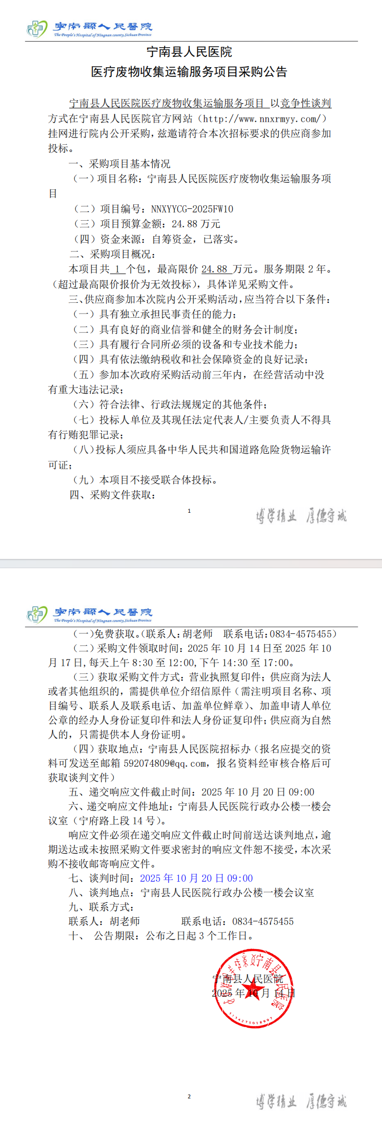 宁南县人民医院医疗废物收集运输服务项目采购公告