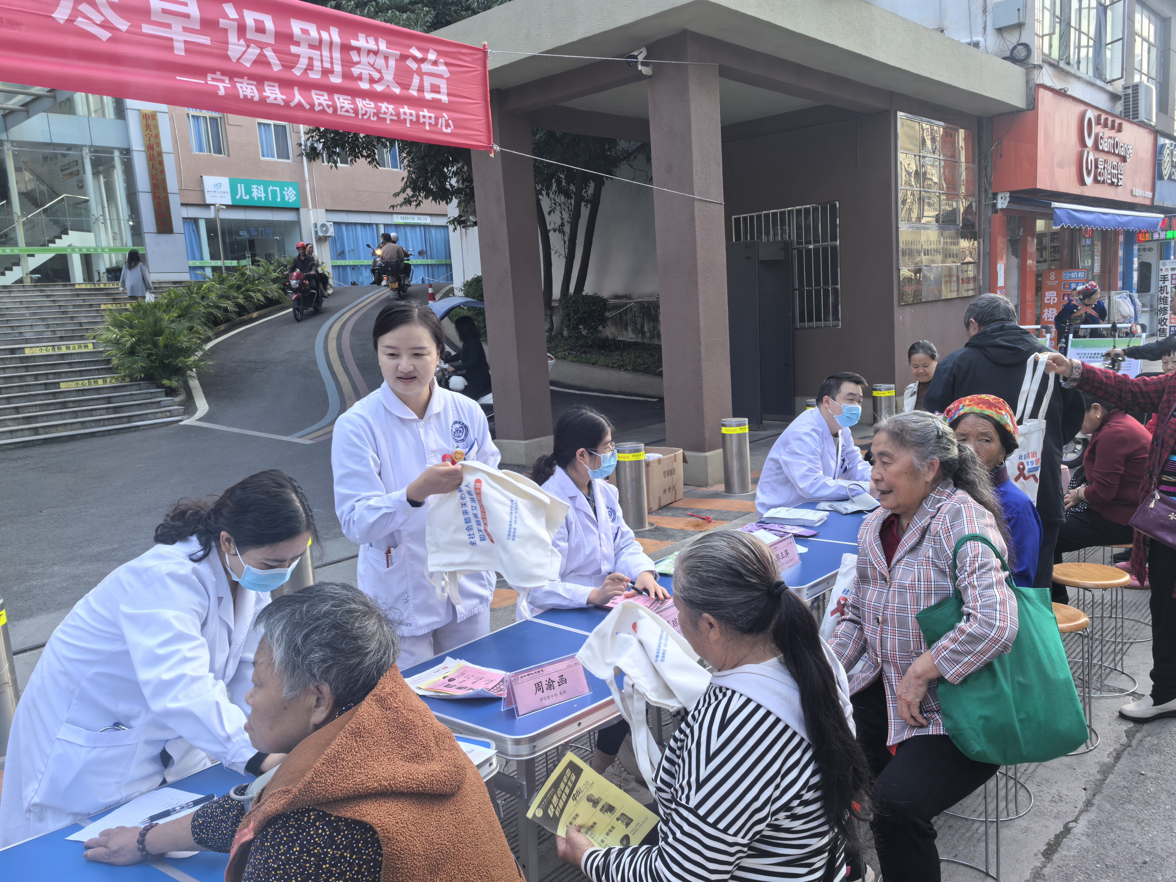 2025年10月29日是第20个“世界卒中日”,为贯彻落实国家卫生健康委《健康中国行动(2019-2030年)》《健康中国行动—心脑血管疾病防治行动实施方案(2023-2030年)》相关要求,响应国家卫生健康委办公厅“尽早识别,立刻就医!”的“世界卒中日”活动主题,宁南县人民医院卒中中心积极行动,在医院正门前开展“警惕卒中症状,尽早识别救治”宣传义诊活动。活动聚焦卒中“早预防、早诊治、早康复”核心目标,通过健康问诊、科普宣讲、免费筛查等形式,向群众普及卒中防治知识,强化卒中预防与急救意识,助力降低卒中发病率、复发率、致残率及死亡率。
